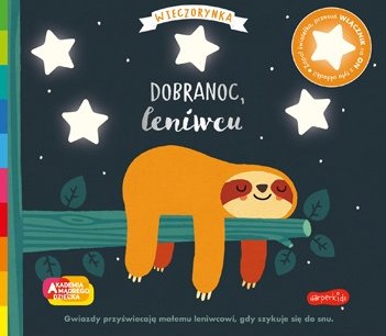 Dobranoc leniwcu, to książeczka w której główny bohater nie chce spać, więc szuka zwierzątek, które będą chciały się z nim pobawić. Niestety jest noc i mała małpka, panda, jaguar i tukan śpią grzecznie wtuleni w rodziców. W końcu zmęczony leniwiec zasypia przy mamie, a gwiazdki mu przyświecają. Wieczorynka to nowa seria świecących książeczek w ramach Akademii Mądrego Dziecka, których celem jest pobudzić zmysł wzroku maluszka. Książeczki z serii Wieczorynka są dobrym sposobem na wyciszenie maluszka przed snem, dzięki spokojnej bajeczce o zasypianiu i stonowanym światełkom.